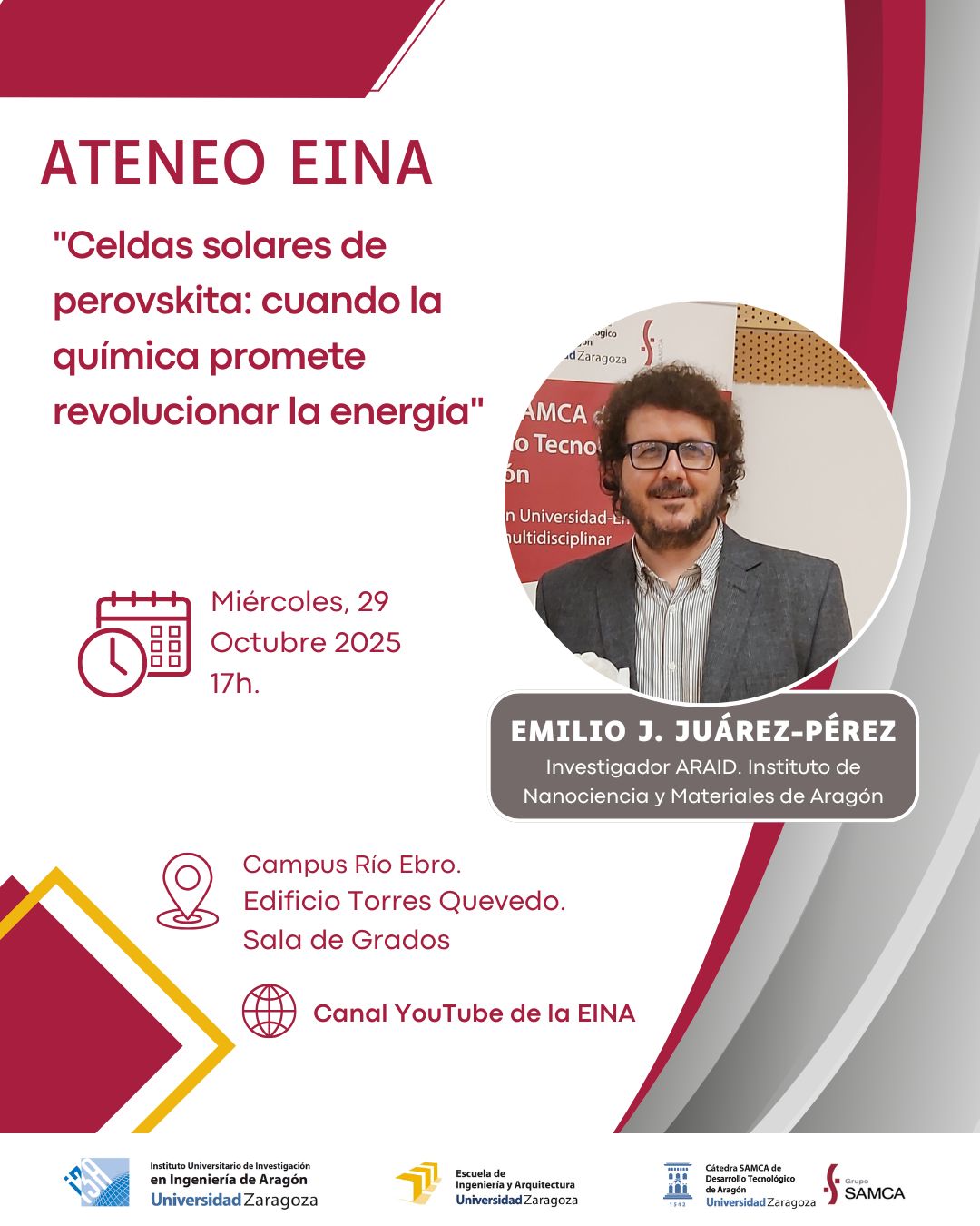 Arranca una nueva temporada del Ateneo de la EINA. La próxima sesión tendrá lugar el miércoles 29 de octubre, a las 17h., y contará con la participación como ponente invitado de Emilio J. Juárez Pérez (investigador ARAID en el Instituto Universitario de Investigación Mixto de Nanociencia y Materiales de Aragón (INMA), instituto mixto CSIC-UNIZAR. Leer más …